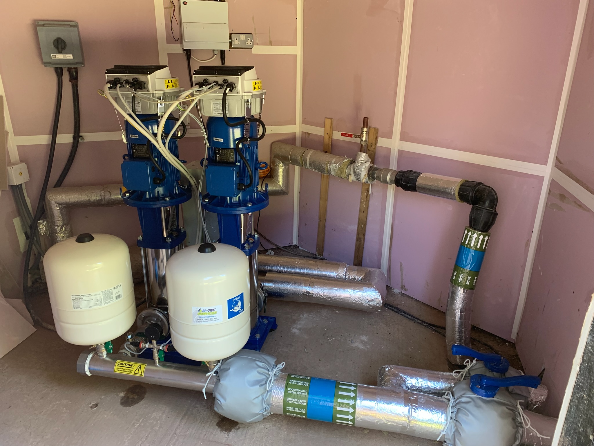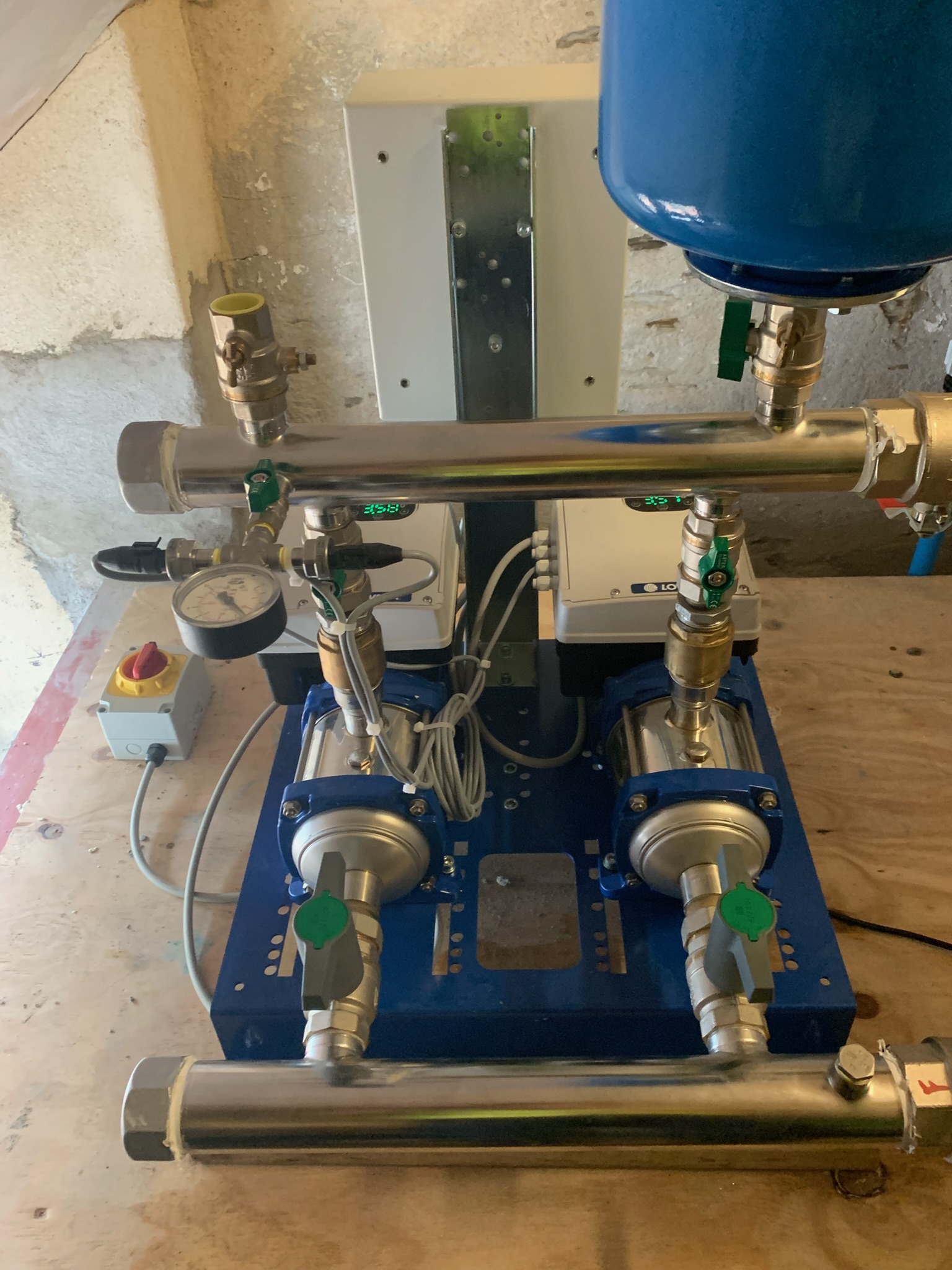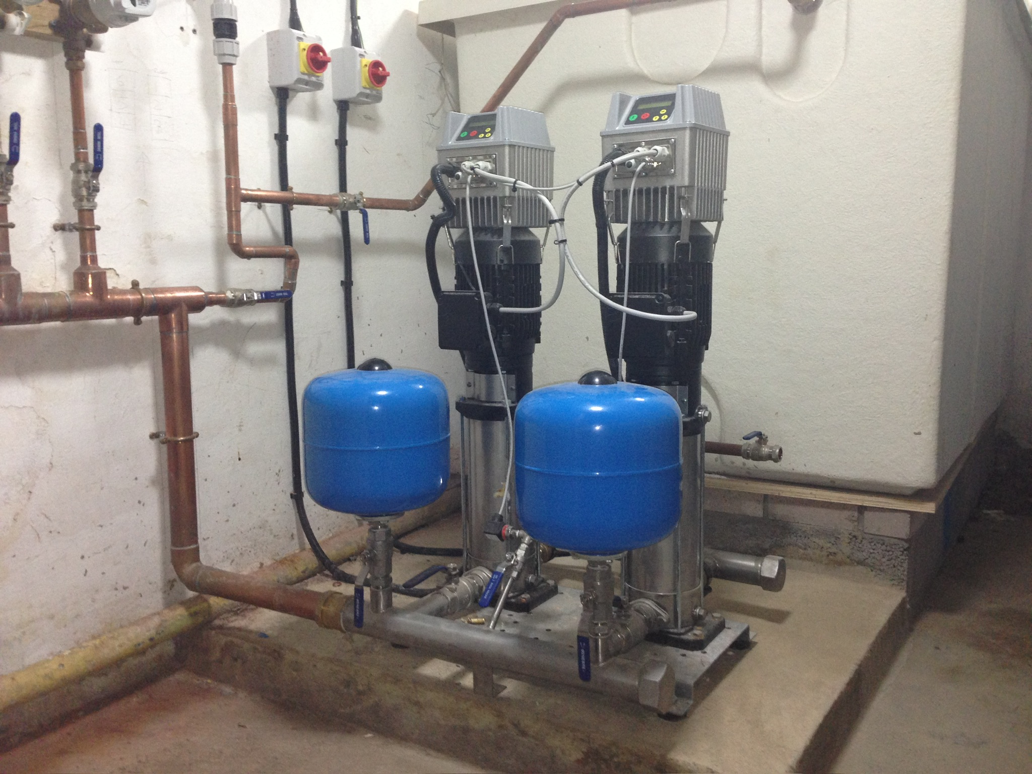 Where the mains water supply may be poor and unable to supply the required flow or pressure a water storage tank and booster set is often used to improve the supply to the property, we carry out works for domestic and commercial customers. We can supply and install replacement, pumps, pressure vessels, pressure switches, variable speed drives and control panels or complete new system.